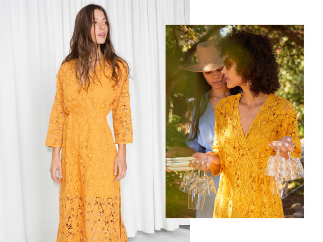 Un vestido de encaje que propone &OtherStories para su colección de cápsulas nupcial 2018. De manga larga y falda parcialmente sin forro y con unos sutiles pliegues en la cintura. Una opción súper veraniega que no sólo podrás aprovechar como vestido de invitada de boda, sino que te servirá para cualquier tipo de festividad.